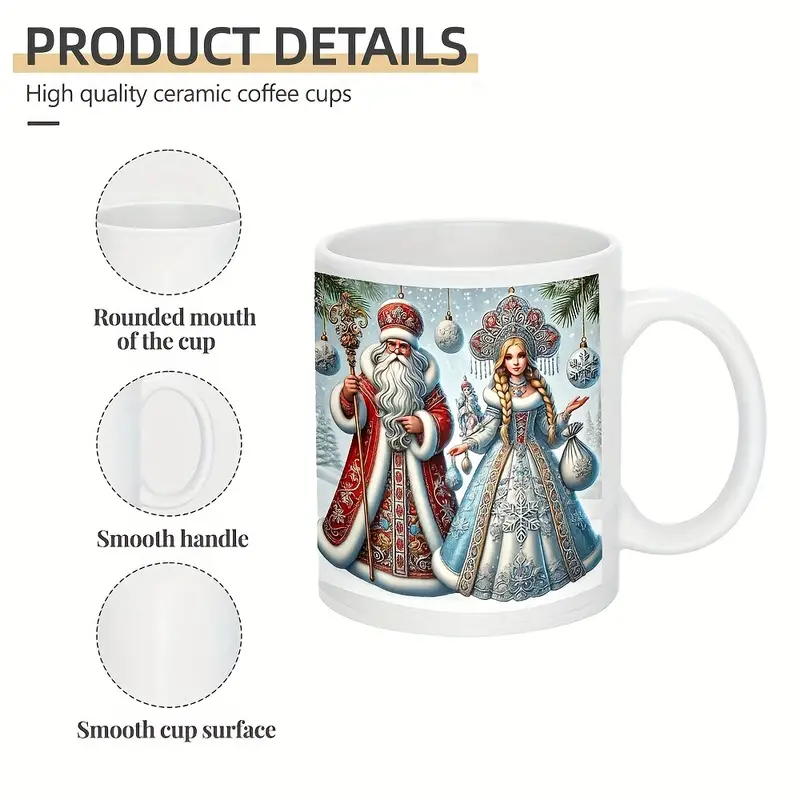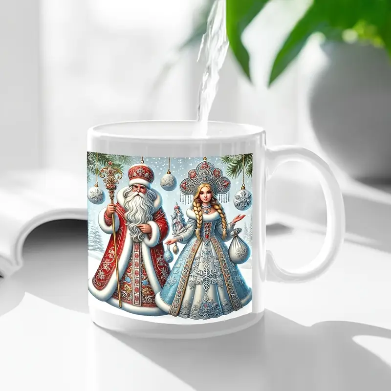 Double-Sided Design with Santa & Snow Maiden, Heat-Resistant, Insulated, Festive Holiday Gift Idea, Holiday Mug.