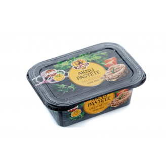 Beef liver 71%, pork, drinking water, margarine (refined and deodorized vegetable oils (including modified), emulsifiers polyoxyethylene sorbitan monooleate, mono- and diglycerides of fatty acids, lecithins (SOY lecithin), acidity regulator citric acid.