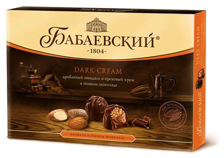 Mini-candies "Babaevskiy Dark Praline" almond - elegantly shaped chocolate candies from chocolate praline based on grated almonds. Covered with chocolate glaze with elegant patterns of chocolate lines. A sophisticated box design in dark chocolate tones makes this set a luxurious option for a thank-you presentation or a congratulatory gift.