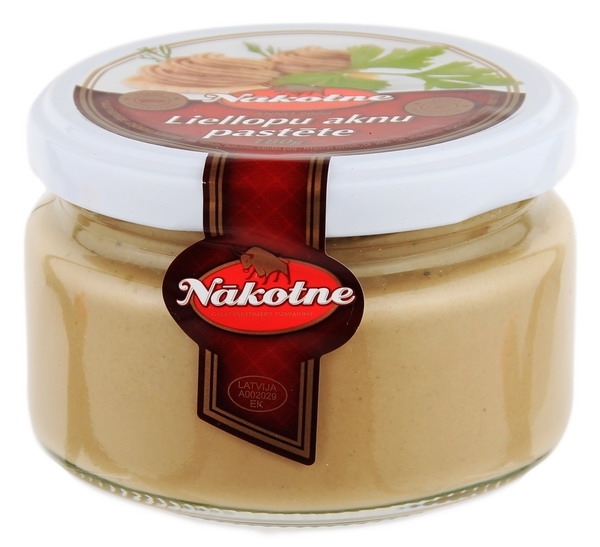 Pasteurized product. Ingredients: beef liver 47%, water, margarine (animal fat and vegetable oil, water, salt, emulsifier (soy + ^ b ^ b-lecithin, E471), citric acid, beta carotene coloring, flavoring), pig skins , beef tallow, pig lard, salt, sugar, spices (including ^ b + celery, mustard ^ b-), spice extracts, dextrose, yeast extract, glucose syrup, whey, vegetable fats (contains soy ^ b + ^ b- lecithin) + ^ b ^ b-lactose, preservative E262, antioxidants E316, E330, acidity regulator E334. Energy value: 1137kJ / 274kcal. 100g product contains: fat 24.3g, including saturated fatty acids 10.4g, carbohydrates 2.7g, including sugars 0.1g, protein 11.3g, salt 1.1g. Storage temperature of + 0 to + 6°C. Country of origin: Latvia. Manufacturer: GPU Nākotne SIA, Grīvas, Nakotne, Glūdas parish, Jelgava district LV 3040th