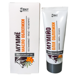 Body cream balm Shilajit and Sea Buckthorn oil has a wound-healing effect, strengthens capillaries, improves blood circulation at the site of application, stimulates tissue regeneration.