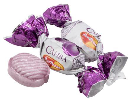 Aromatic caramel "Sliva" from the factory "Rot Front" is a pearl caramel pearl, concealing a viscous plum jam with a bright sour-sweet taste. A harmonious combination of sweets of caramel and plum acid, which will be appreciated by lovers of refreshing fruit shades, and uncompromising sweet tooth.