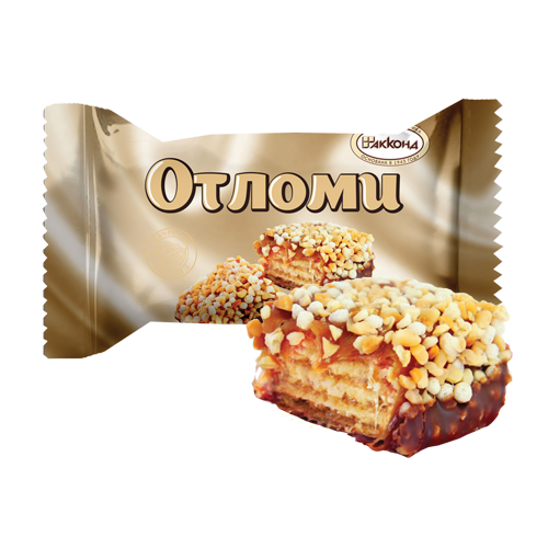 Original waffle sweets with milk caramel and cream filling, sprinkled with peanut nibs and puffed rice.