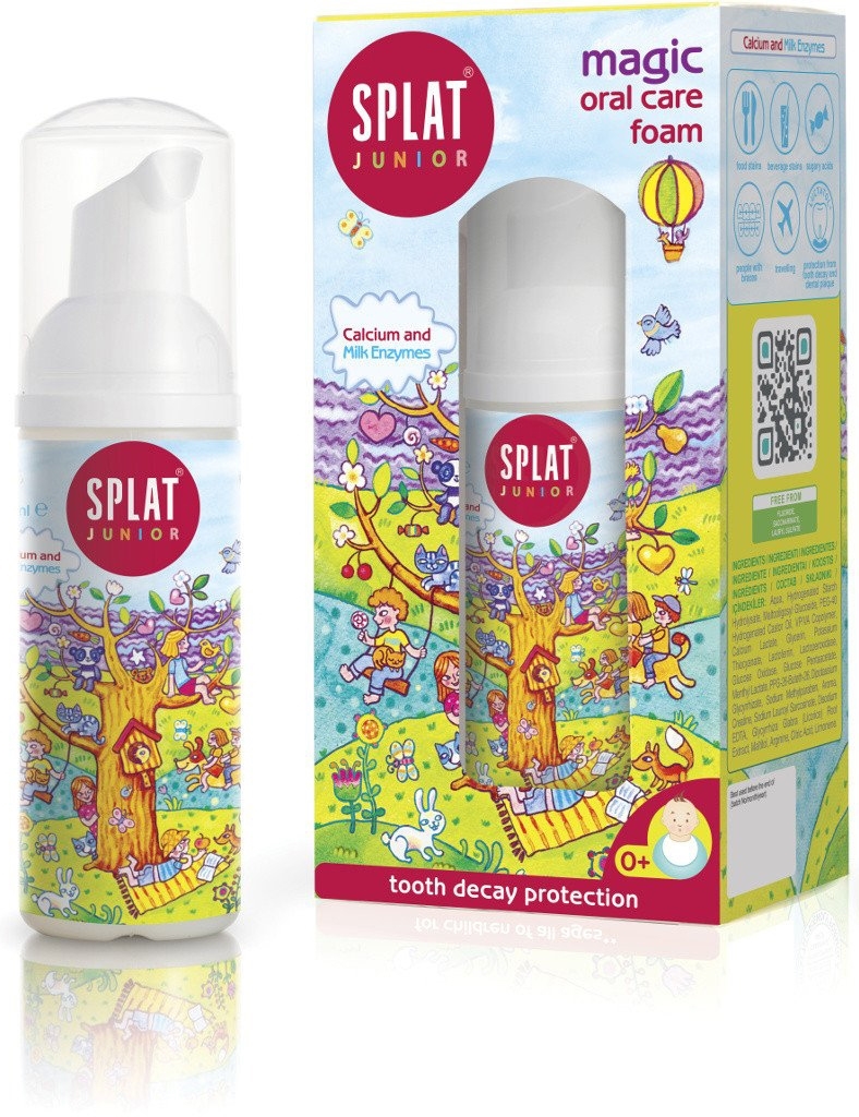 Unique magic foams for oral cavity care by day and any time after food intake turn the obligatory hygienic procedure into a fascinating game. With the help of a dosing device, the liquid is transformed into a sweet foam cloud which allows a small rinse dose to be distributed evenly through the whole oral cavity. Small bubbles penetrate into inaccessible places and “drag away” plaque and impurities.