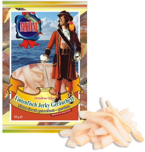 Fresh squid (Ommastpehes Bartramii) from the Pacific is prepared according to a special recipe, carefully dried, smoked and sliced into rings. The result is a surprisingly delicate snack, with very few calories, lots of protein and it tastes just the way you want it.Try it, be amazed and become a convert...
