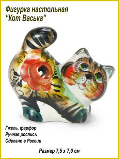 Table figurine "Cat Vaska", porcelain made and hand-painted by craftsmen with colored paints in the Gzhel style. Gzhel painting is usually presented in white and blue tones, but it can also be colored. Funny souvenir in Russian style. A variety of products from Gzhel porcelain are known and popular throughout Russia. The size of the figurine is 7.5 x 4.0 cm, height 7.0 cm. This decorative cat figurine is a vivid example of Russian applied art, an inexpensive Russian souvenir, and a spectacular element of home decor. A nice gift for a woman, wife, friend, girlfriend, girlfriend, work colleague for the New Year, Valentine's Day, March 8, birthday, housewarming, any other significant event. Perfect as a gift for a Gzhel collector or just a lover of cats, seals and kittens. Please note that porcelain painting is handmade, and the pattern on the products may have some differences from the samples shown in the photo.