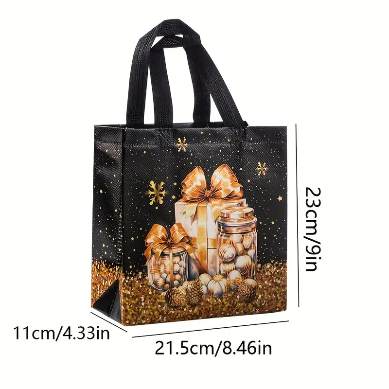 Black Christmas gift bag with handle, non-woven holiday party gift bag, 22.86x21.49x11.0 cm.