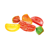 Caramel candy in the form of citrus slices with a taste of lemon, orange and grapefruit.