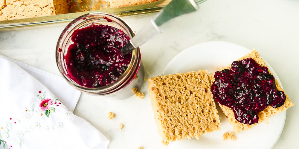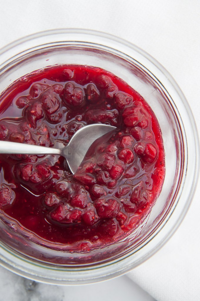 This is not your typical sweet jam. Lingonberries are quite tart, which makes them perfect for a jam accompanying savory dishes (stake, schnizel, frikadeles) also delicious in baking or spread on toast. It is jam packed with delicious high fibre chia seeds with all their plant omega-3 fatty acids.