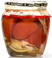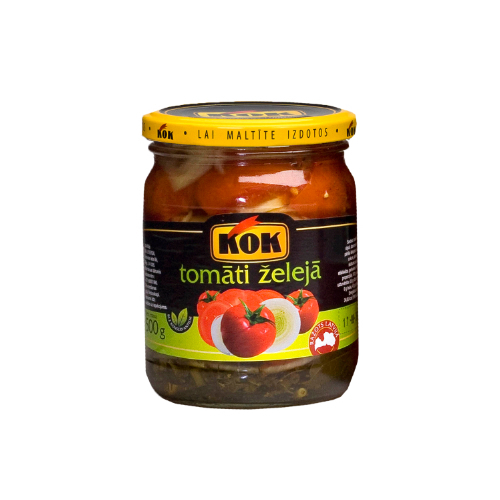 Ingredients: Tomati (60%),onion,water,gelatine,sugur,salt,acetic acid,spices,Nutrition value: per 100g 121kJ/29kcal , fat 0.2g, carbohydrates 5.6g., of which sugars 3.0g, protein 1.3g, salt 1.0g.Made in Latvia. Distributor: SIA"LEVERSA,Uriekstes 8b.,Rīga.Latvija.