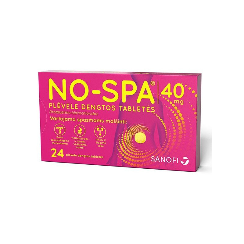 No-Spa eliminates common cause of abdominal pain - contraction and can be used in menstrual cramps, cystitis, irritable bowel syndrome and other intestinal ailments.