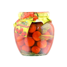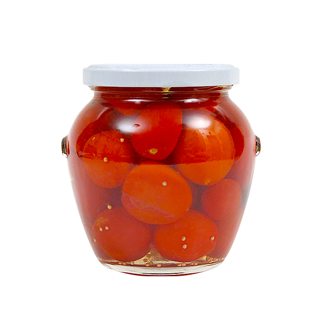 Ingredients: cherry tomatoes, water, salt, sugar, acidity regulator:citric acid, mustard seeds (allergen) and spices