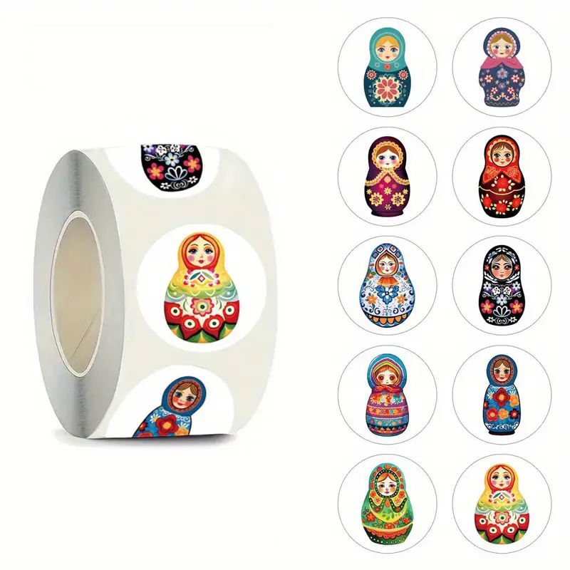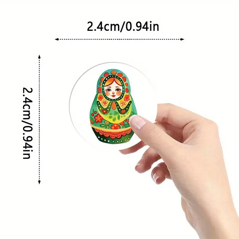 500pcs Russian Matryoshka Doll Stickers, 2.54 cm, Reusable Synthetic Paper Decals - Vibrant Cartoon Designs for Laptops, Water Bottles, Skateboards, Luggage.