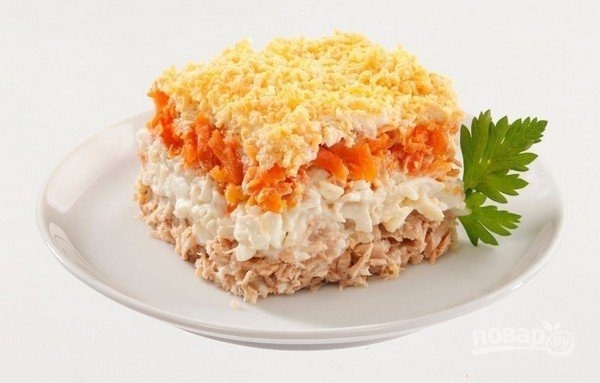 Mimosa is a canned fish layered salad. As well as Herring Under Fur Coat and Salad Olivier, Salad Mimosa finds its place on the table for big holiday celebrations, such as New Year, Christmas, birthdays and others. Canned fish could be tuna, saira or similar.