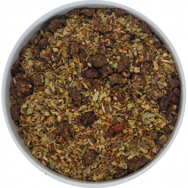 Ingredients: cooking salt, barberry berries, oregano, garlic, sweet red paprika, basil, cumin, bay leaves, savory, black pepper, paprika extract.