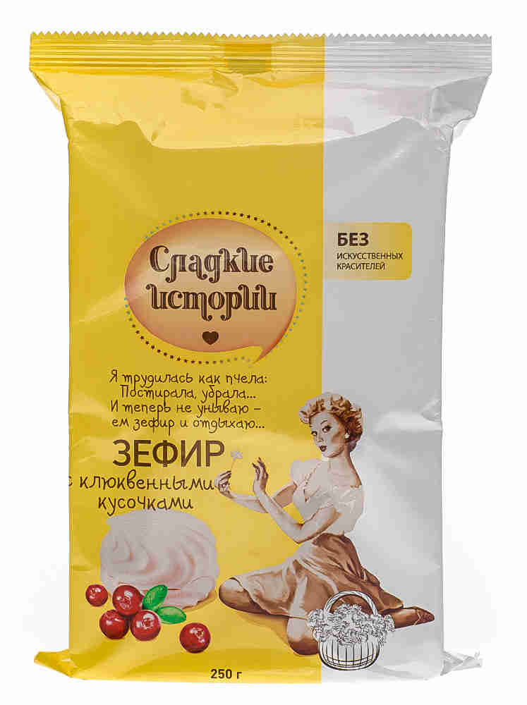 Marshmallow "Sweet stories" with cranberry pieces is a delicate spicy delicacy. Airy marshmallow melting in your mouth with a light berry flavor and aroma, complemented by juicy pieces of cranberry berries. Their invigorating sourness gently sets off the marshmallow sweetness, enriches the taste. A great addition to tea, coffee and fun conversation.