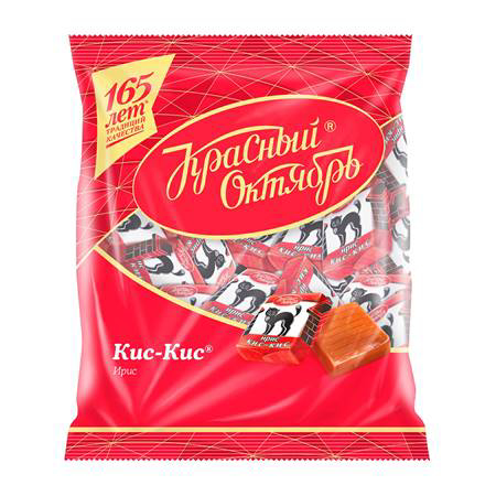 These toffees are good both externally, and composition, and consistency. This is a viscous version of toffee, they are very good in taste and reminiscent of childhood. Candies produced by the Red October factory are square in shape, toffee of a pleasant color, a shade of boiled condensed milk. Sweets are not deformed, even and smooth on all sides. Toffee wrapper "Kis-Kis" is easily recognizable, contrasting, three-colored, with the image of a cat. Candies are neatly packaged, easy to get out of the candy wrapper.