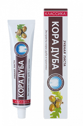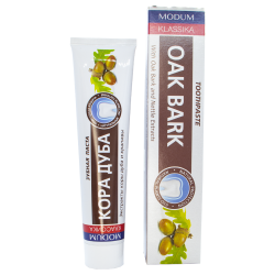 Toothpaste with oak bark extract strengthens and protects your gums. Specially selected composition perfectly cleans teeth from plaque and freshens breath for a long time. The composition of the toothpaste uses natural and time-tested extracts of medicinal plants.Oak bark extract has anti-inflammatory, antiseptic and hemostatic properties. The tannins of the extract interact with the proteins of the affected gums and form a protective structure that protects against irritation and inflammation, and also stops the growth of pathogenic microorganisms.Nettle extract has a hemostatic, tonic, anti-inflammatory effect. Chlorophyll contained in the extract improves metabolism, stimulates granulation and epithelialization of damaged tissues of the gums and oral mucosa.