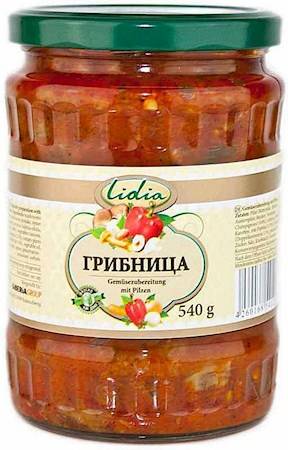 Vegetable caviar "Mushroom" - a cold appetizer made from cooked and chopped vegetables and mushrooms. Recently, it has become one of the most favorite dishes due to its wonderful taste and aroma. This is a very healthy and tasty dish for unexpected guests. The product contains: mushrooms, onions, carrots, red peppers, tomato paste, sunflower oil, spices and herbs.
