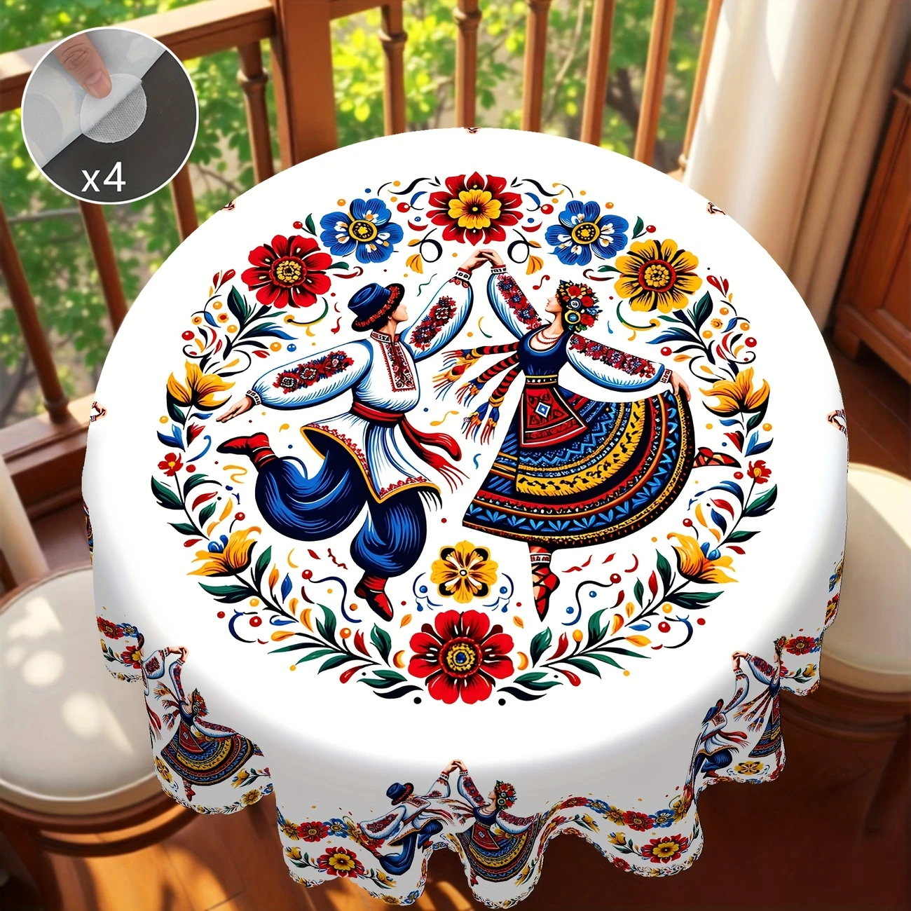 Vibrant Ukrainian Dance-Inspired Tablecloth - 1pcs