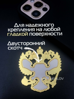 Volumetric metal 3D sticker Coat of arms of the Russian Federation - looks solid and will be a great addition to a phone or tablet case, whether it's a book or an overlay. The self-adhesive steel coat of arms is voluminous, so the phone will not slip in your hand. The coat of arms sticker can be attached to a phone case, in a car interior, on the cover of an identity card, passport or wallet. 3d sticker coat of arms of Russia is securely fixed on almost any smooth flat surface. The metal sticker has a strong double-sided adhesive tape, so that when worn it will not peel off or fall off. A special protective transparent top layer is applied to the Emblem of the coat of arms, which allows for a long time to preserve the original appearance. An excellent gift 3D sticker, suitable as a gift to please.