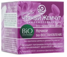 Ночной крем для лица ЧЕРНЫЙ ЖЕМЧУГ BiO программа – крем для основного ухода за кожей в ночное время и подходит для кожи любого возраста. Ночной крем насыщает питанием глубокие слои кожи, восполняет собственные ресурсы восстанавливая и обновляя клеток. Ваш результат утром – более свежий и здоровый цвет лица. Кожа заметно более упругая и эластичная. Основные компоненты: - Витамин Е - Масло авокадо - Масло виноградных косточек - Масло пассифлоры - Масло подсолнечника - Масло ШИ (масло карите) - Протеины шелка - Ретинол (активная форма витамина А) Наносить ночной крем нужно до 22:00, а если вам больше 45 лет, то ночной крем желательно нанести до 21:30. Так как в 23:00 начинается интенсивная ночная регенерация кожи, и к этому моменту кожа должна быть увлажнена и обеспечена питательными веществами.
