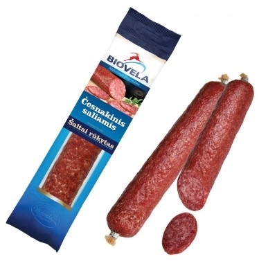 Свинина и сало измельчаются очень мелко. В поперечном разрезе показан монолитный узор из нежирного мяса и равномерно распределенных мелких кусочков лардонов.Помимо натуральных специй, он содержит чеснок для отличительного аромата.Вес:230 гУсловия хранения:0 - + 15 ºC