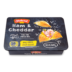 Reheat and eat - tasty cheesy with ham small cheburek!
