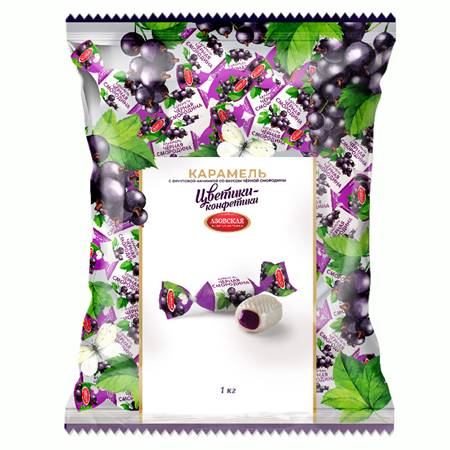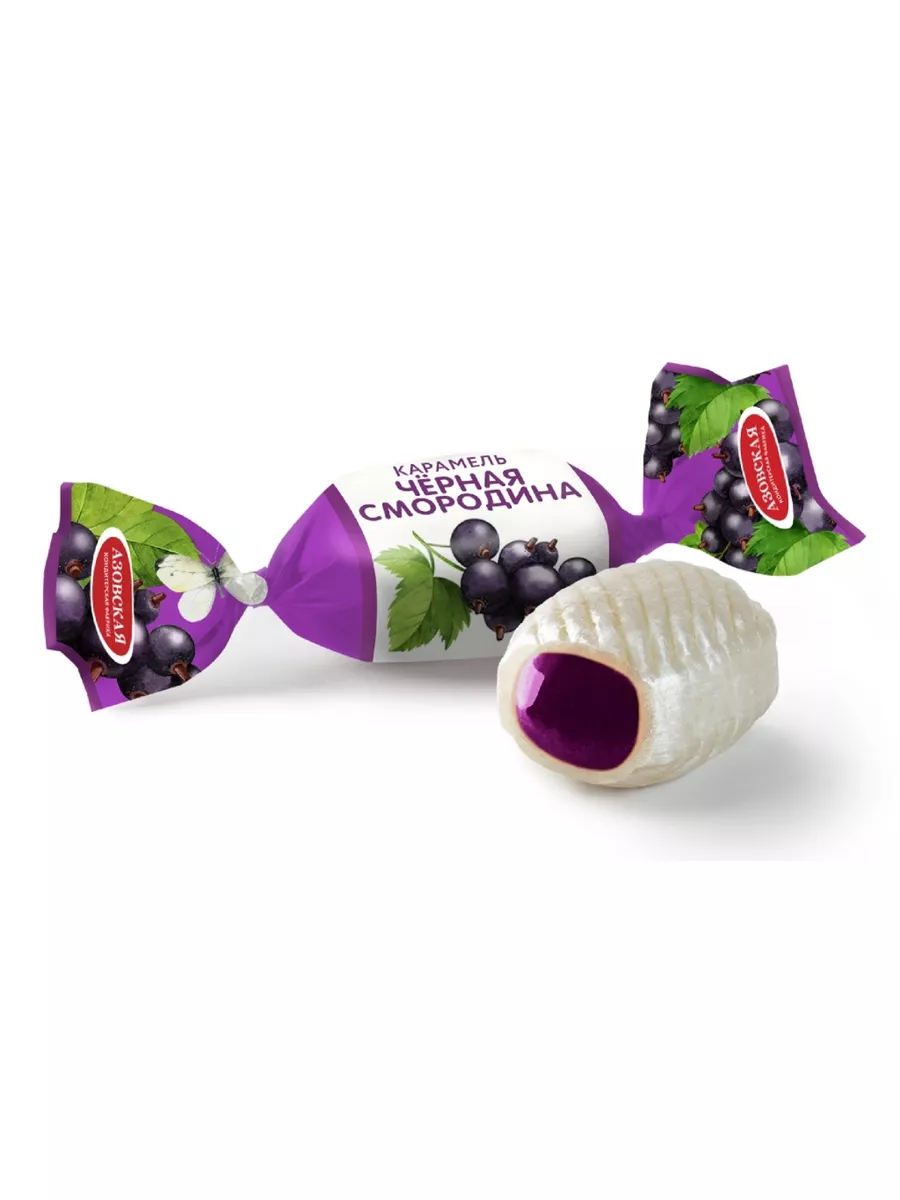 Карамельные конфеты «Черная смородина» – белая сахарная карамель с начинкой из фруктово-ягодного пюре с черной смородиной. Ароматные карамельки с нежным, будто бы сливочным вкусом, который дополняет легкая кислинка текучей ягодной начинки. Настоящий вкус летнего чаепития в прогретом солнцем тенистом саду.