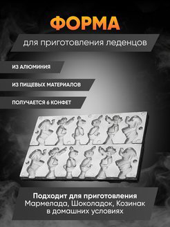 Форма для леденцов на палочке зверушки устойчива к температурам. Всего в форме получается несколько конфет-леденцов из сахара. Формочка кондитерская отличный подарок. Форма для леденцов подходит для изготовления фигурок из шоколада и карамели а так же глазури, мастики.