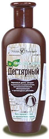 Гель для душа не содержит искусственных красителей или ароматизирующих добавок. Подходит для частого использования людям любого возраста. Против: акне, экзема, себорея, псориаз, перхоть и кожный зуд. Вода, лауретсульфат натрия, кокамидопропилбетаин, лаурилглюкозид, кокамид ДЭА, хлорид натрия, березовый деготь, динатрий ЭДТА, лимонная кислота, метилхлоризотиазолинон, метилизотиазолинон 0% искусственный краситель, имеет резкий запах дегтя.