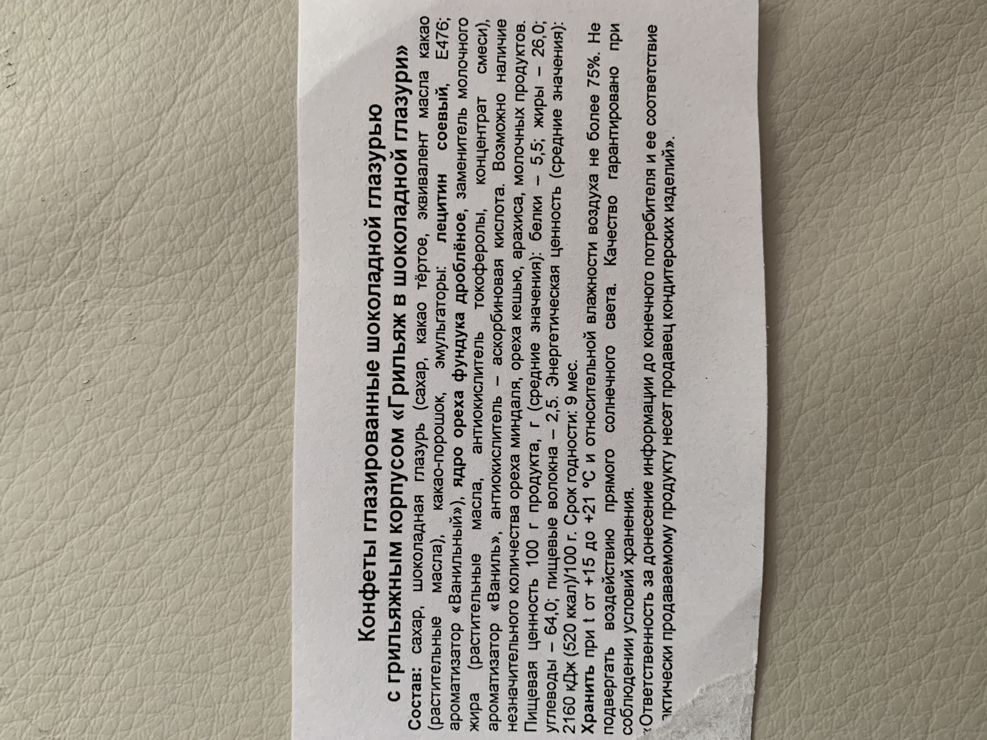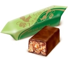 Традиционный «Грильяж в шоколаде» от фабрики «Рот Фронт» – тягучая полупрозрачная карамель, в которой увязли осколки дробленых лесных орехов. Вязкая сахарно-ореховая масса покрыта темной шоколадной глазурью и упакована в светло-зеленый бумажный фантик с оригинальными чуть золотистыми силуэтами белочек.