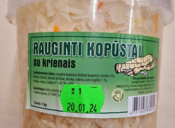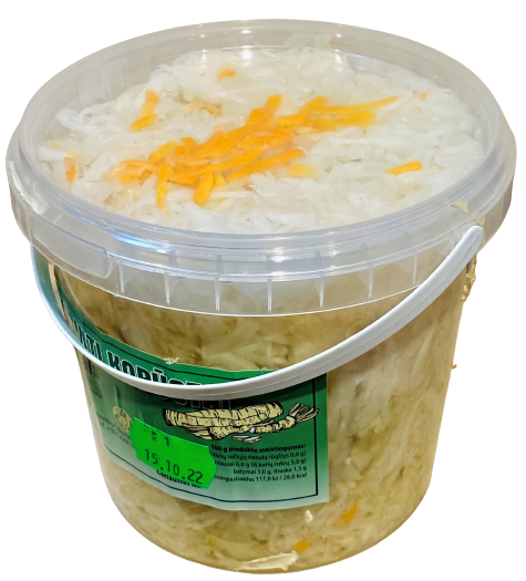 Состав: капуста квашеная (белокочанная капуста, соль, семена тмина), морковь, масло, сахар, хрен, смесь специй.Производство: Латвия. Срок годности: смотрите на упаковке