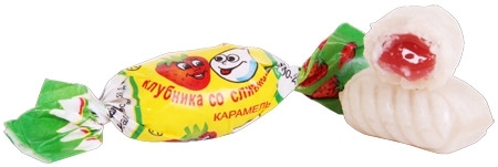 Душистая карамель «Клубника со сливками», знакомая с детских лет. Крохотный батончик белой карамели с фирменным «тигровым» орнаментом и насыщенным сливочным вкусом, начиненный яркой розовой помадкой из сочной клубники и сливок. Вкус лета и детства. Прекрасно сочетаются с чаем и хороши как самостоятельное лакомство.