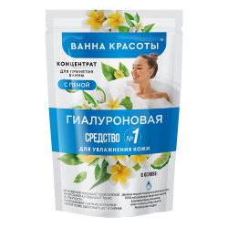 Гиалуроновая ванна красоты – это глубокое увлажнение и уход за кожей. Ванна наполняет кожу влагой на клеточном уровне и делает ее мягкой, гладкой и сияющей. Двойная порция гиалуроновой кислоты увлажняет кожу и поддерживает оптимальный баланс влаги. Жемчужная пудра придает коже мягкость и сияние. Эфирные масла франджипани, жасмина, иланг-иланга и бергамота питают кожу и оставляют чарующий аромат.