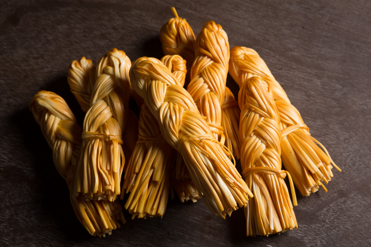 Настоящий шедевр золотисто-коричневого цвета; копченый, с неповторимым вкусом и ароматом, сделанный мастером сыра, который заплетает сырные нити в красивую косу.