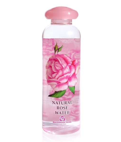 Производится путем дистиляции цветов масличной розы Rosa Damascena Mill, Rosaceae розовая вода - натуральный тоник. Успокаивает, увлажняет и омолаживает кожу.