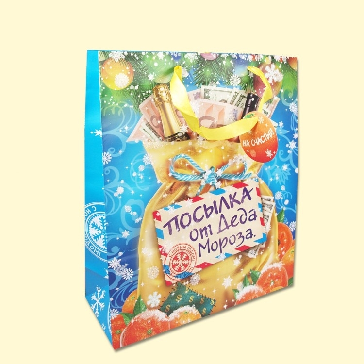 Пакет подарочный, ламинат, "Посылка от Деда Мороза",32х26х10 см