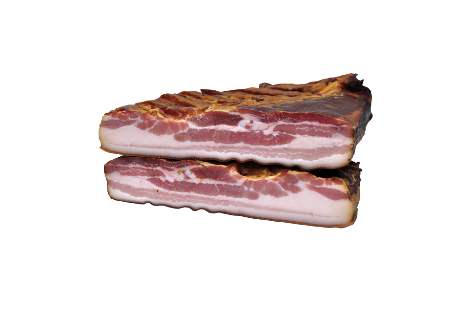 Холодного копчения Экстра Состав: бекон свиной (91%), соль, специи. Энергетическая ценность на 100 г: 1688 кДж / 408 ккал. Условия хранения: 0 +15 ° С.