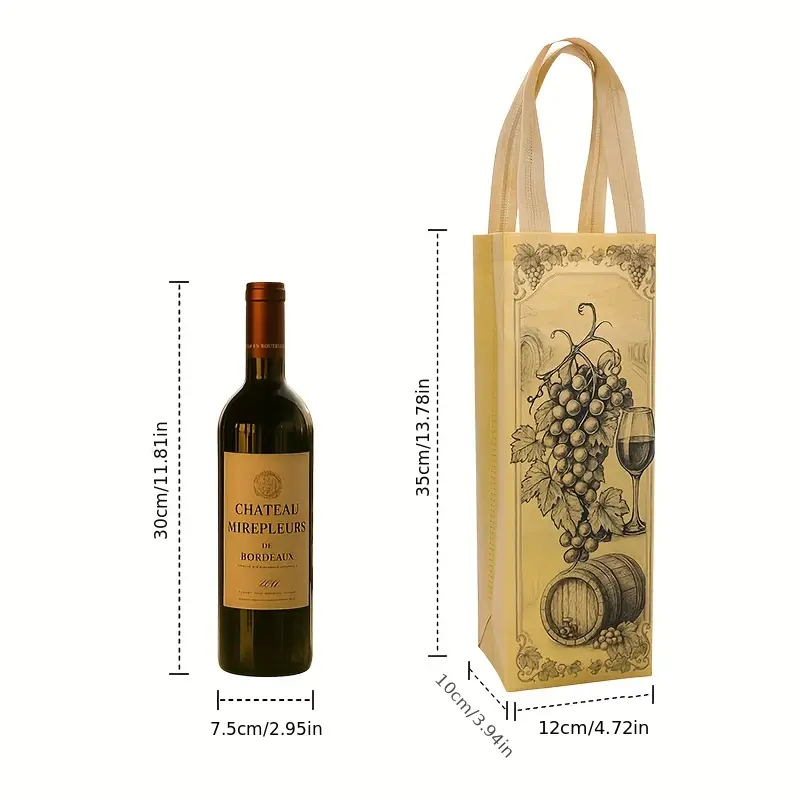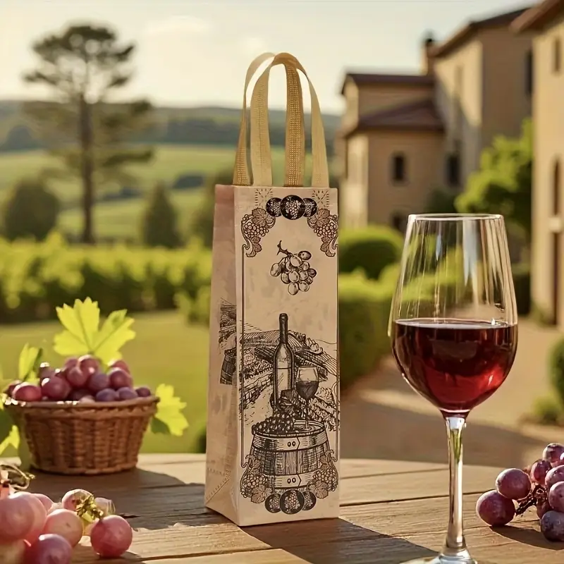 Элегантные подарочные пакеты для вина — многоразовые, из нетканого материала с прочными ручками.