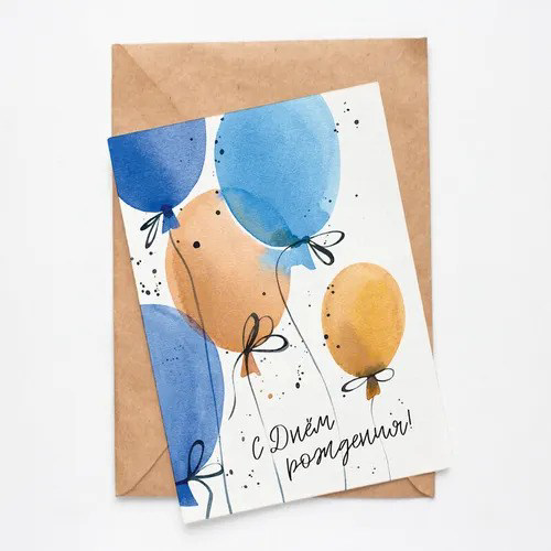 Акварельная открытка С днем рождения! воздушные шары. Открытка НЕ открывается, размер 10,5х15 см. Иллюстратор Валентина Русинова