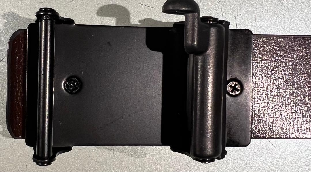 Ремень с автоматической пряжкой и тисненым логотипом из сплава.
