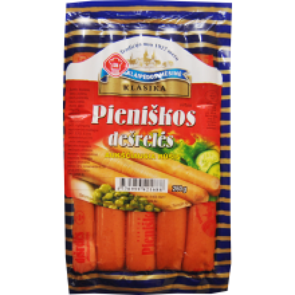 PIENIŠKOS Вареные классические колбаски высшего качества из свинины и говядины без использования усилителя вкуса / E621. Лучшая покупка!