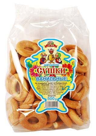 Sushki is traditional Russian tea bread. It is a small, crunchy, mildly sweet bread ring which can be eaten for dessert. Sushki are natural and delicious bread rings with vanilla flavor - a great and healthy snack on the go and delicious dessert to have with tea or coffee.