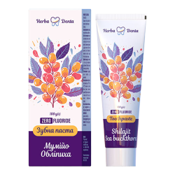 Зубная паста Herba Denta Мумие и Облепиха деликатно очищает зубы и десны от остатков пищи и микроорганизмов, поддерживает гигиену полости рта, устраняет неприятные запахи и освежает дыхание. Обладает антибактериальными и противовоспалительными свойствами. Укрепляет десны, уменьшает воспаление, обеспечивает комплексный уход и поддержку здоровья зубов и десен.